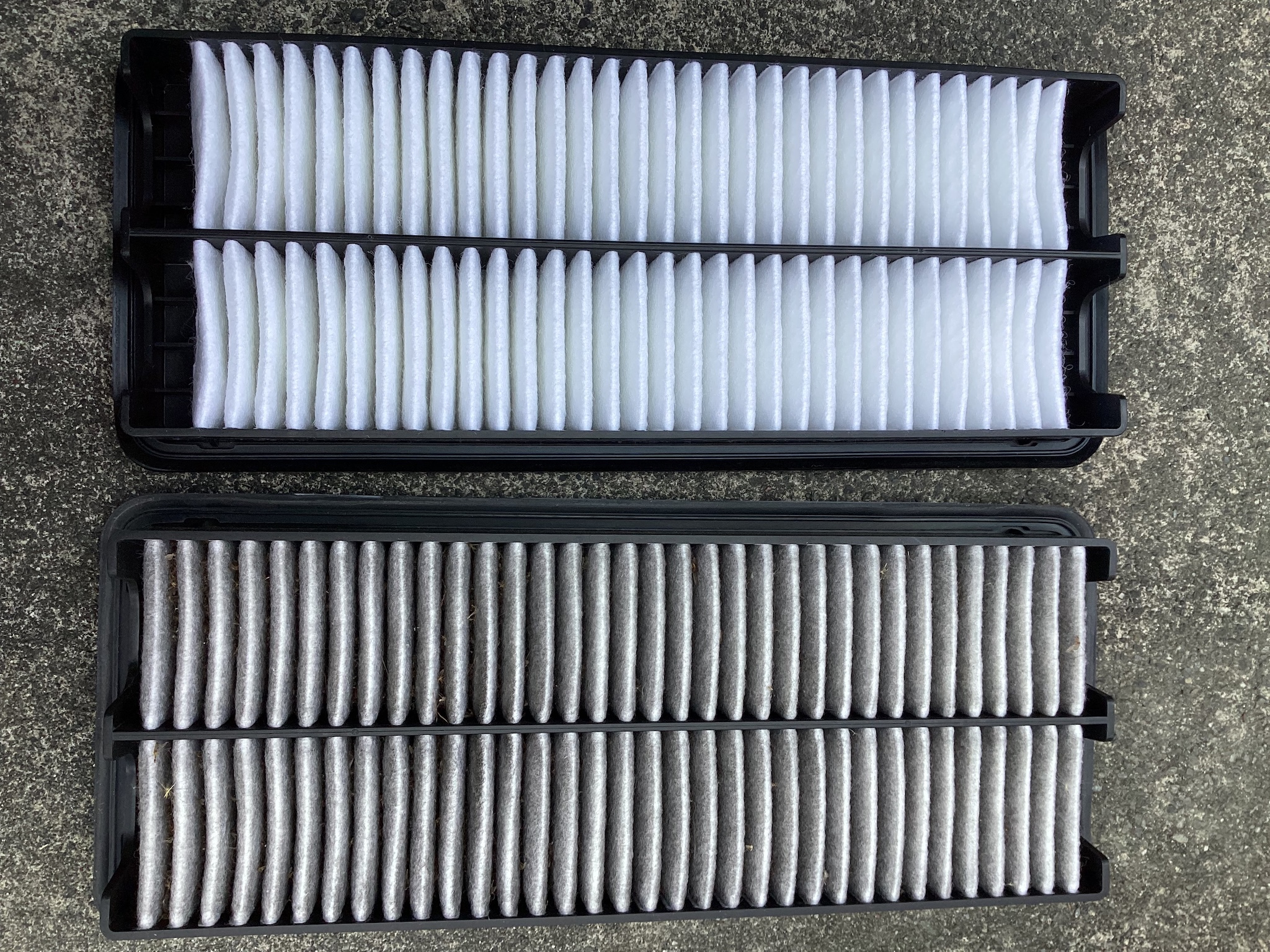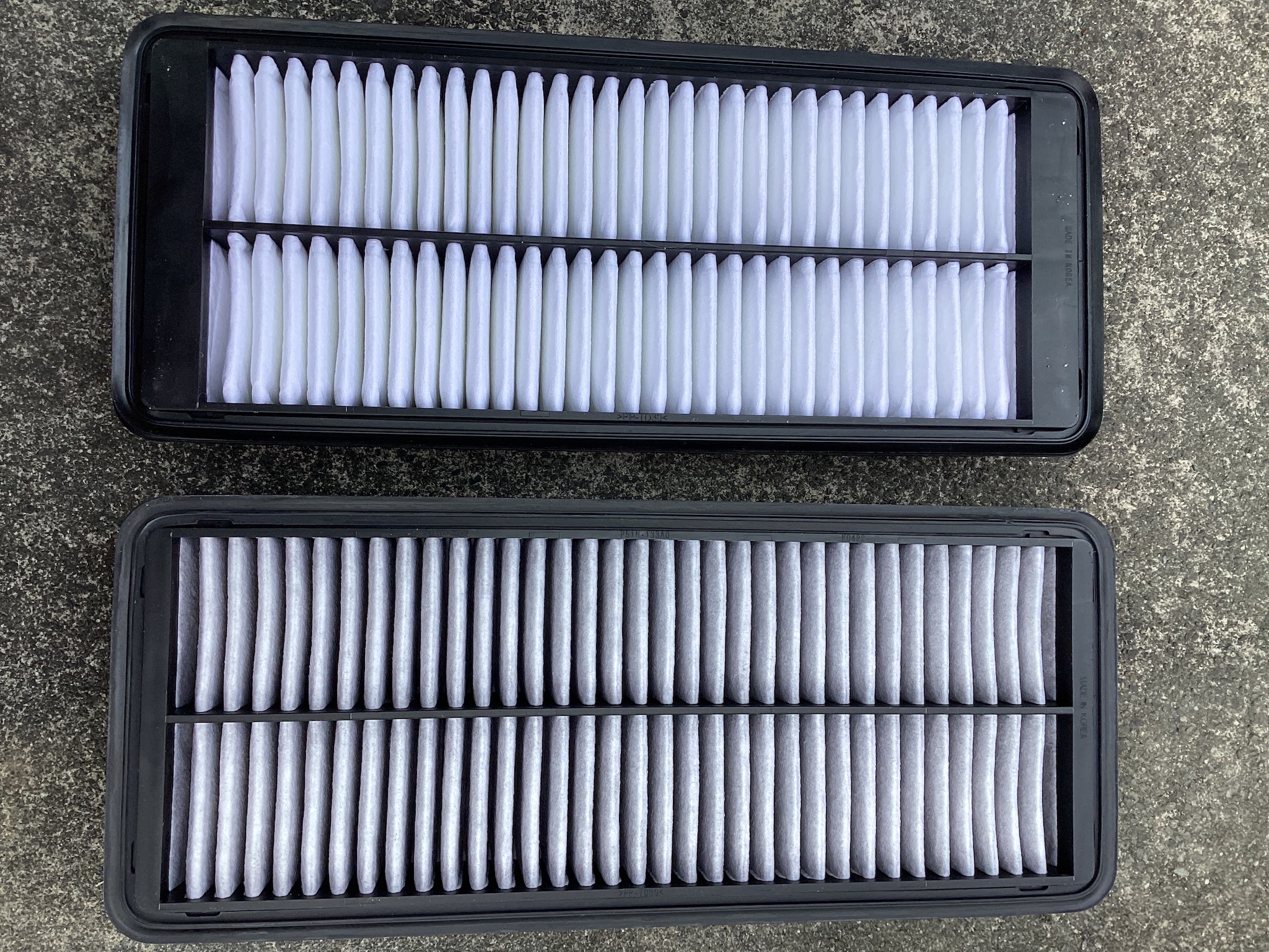 新しい方は、気持ち開口部の長手寸法が短いけど(純正のエレメントだし)きっと大勢に影響ないんだろう。